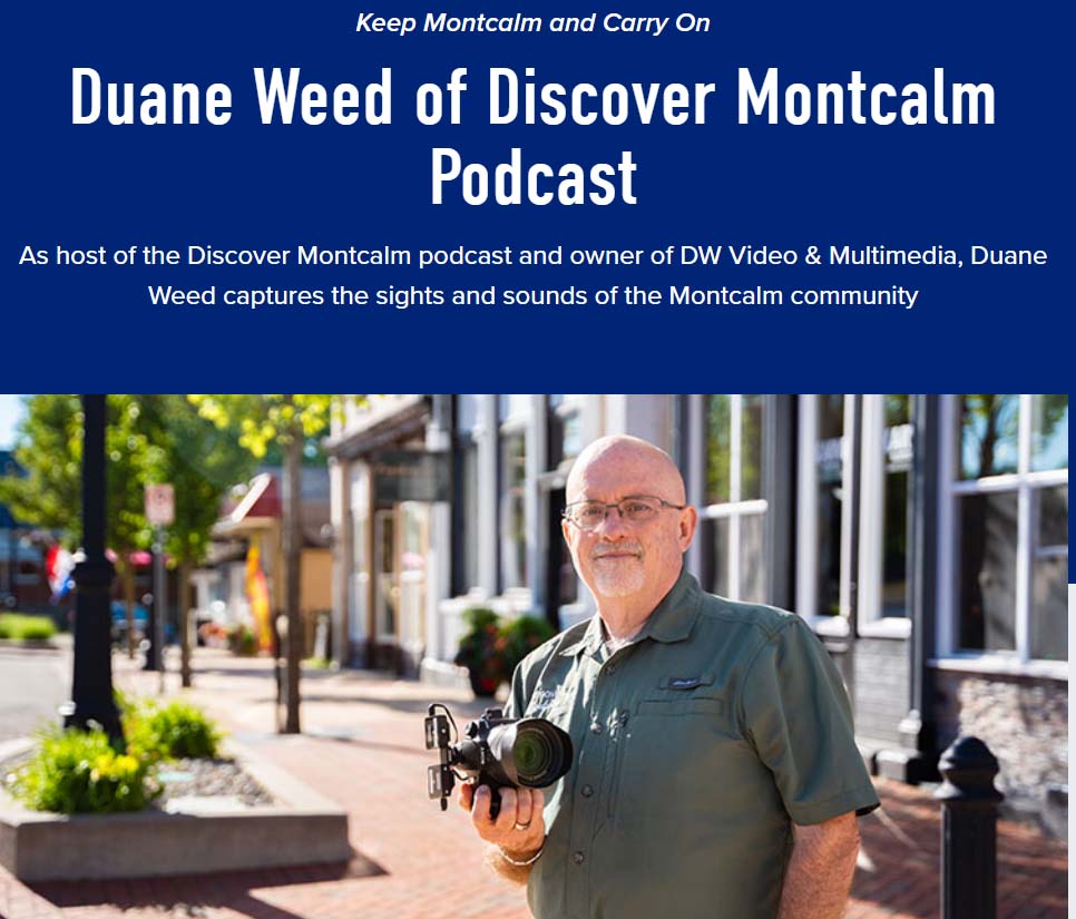 Discover Montcalm Podcast producer and host Duane Weed, based in Howard City, Michigan, was honored to be selected as the featured voice for Montcalm County. Through his work in local media, video production, and podcasting, Duane shares authentic stories from Montcalm County and West Michigan, spotlighting small businesses, educators, entrepreneurs, and community changemakers. His feature reflects the strength, creativity, and community spirit that define rural West Michigan and the people who call it home.
